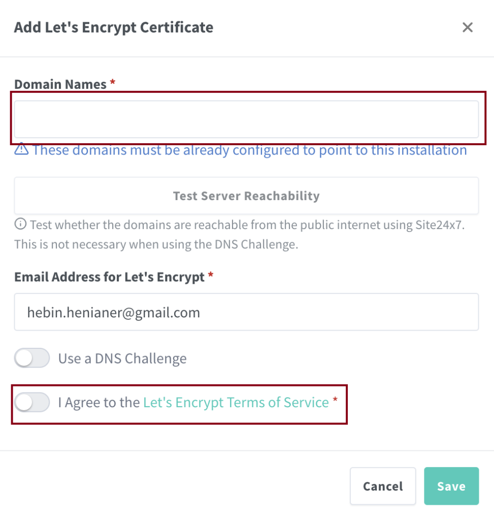 - 在SSL Certificates中,点击Add SSL Certificates,点击Let’s Encrypt,填写需要申请的域名的证书,同意并保存,一段时间后就会申请成功(三个月时长的证书)