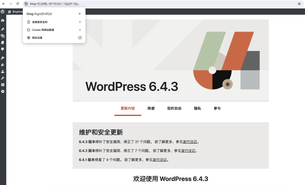 - 这时已经配置好,但是还不能访问,还要去Word Press中进行HTTPS访问的配置